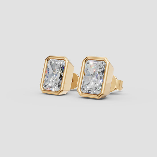 Radiant Cut Diamond Stud Earrings with a bezel setting.