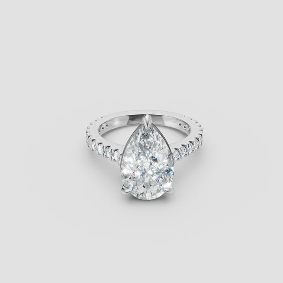 Cut: Pear diamond Setting: Cathedral Metal: Available in Platinum, 9ct or 18ct gold (white, yellow or rose) Diamond sizes: 1.0ct - 5.0ct