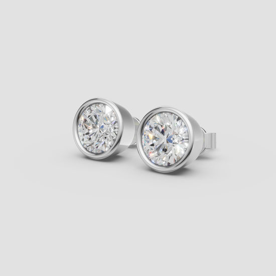 Round Cut Diamond Stud Earrings with a bezel setting.