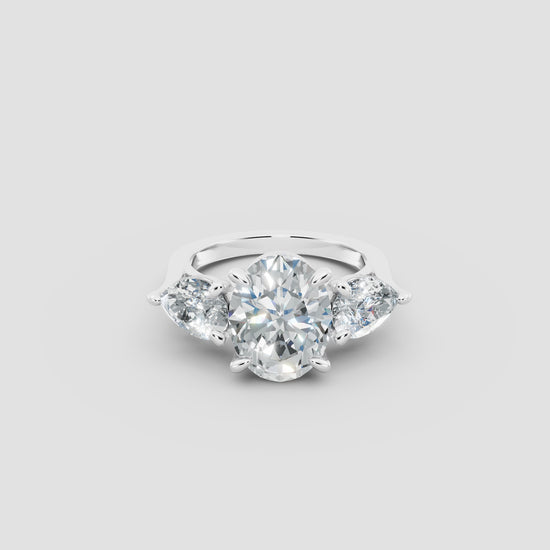 Trilogy Ring, Oval Centre Stone with Pear Cuts on each side.
